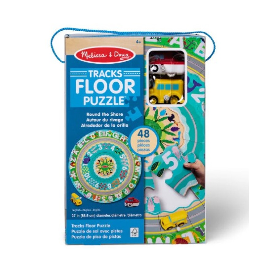 Melissa & Doug Round the Shore Tracks Cardboard Jigsaw Floor Puzzle With Wind-Up Vehicles (48 Pcs)